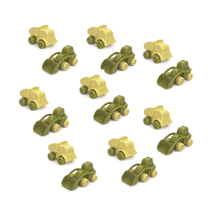 Tractor de 19 cm. fabricado con un 98% de caña de azúcar y un 2% de astillas de madera del arbol del caucho. Producto eco-friendly, sostenible y reciclable.