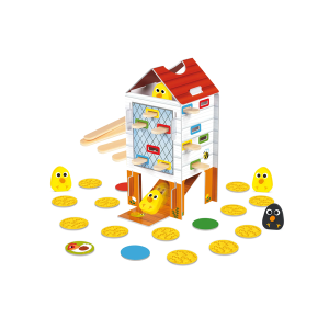 El juego consiste en ir tirando el dado y colocando los dinosaurios, del color que el dado indique cada vez, uno encima del otro sin que pierdan el equilibrio. Hay tres tamaños distintos de dinosaurios para hacer más divertido el juego.